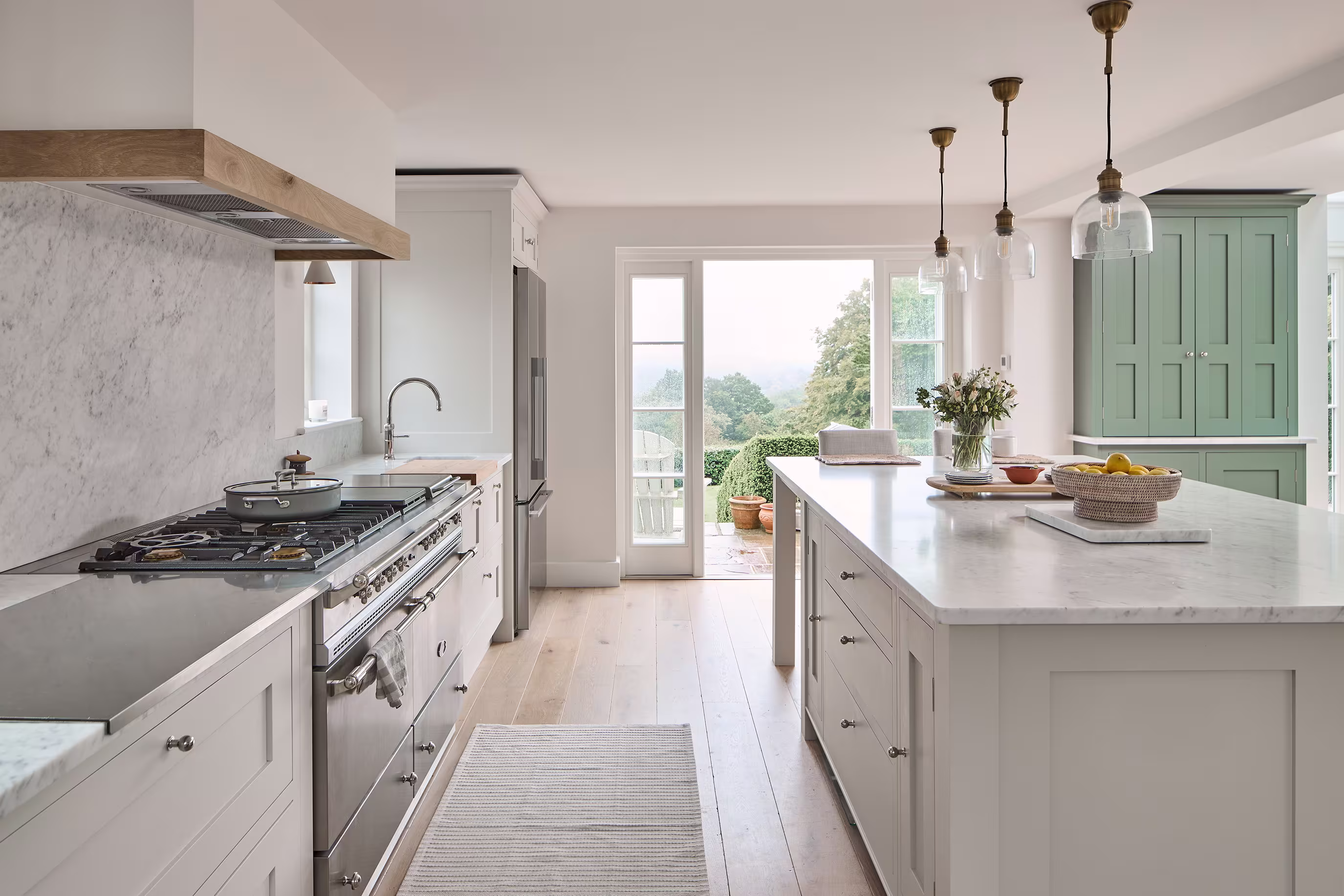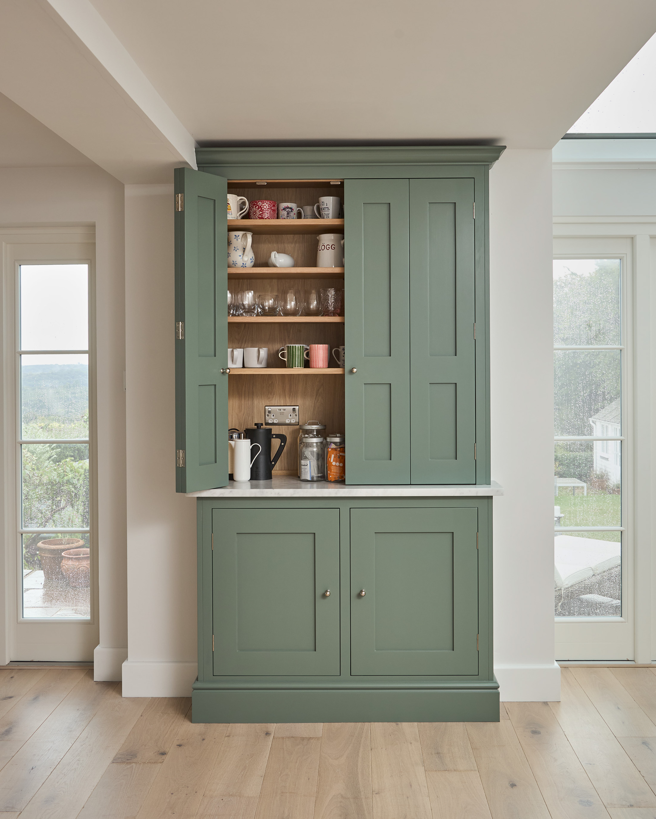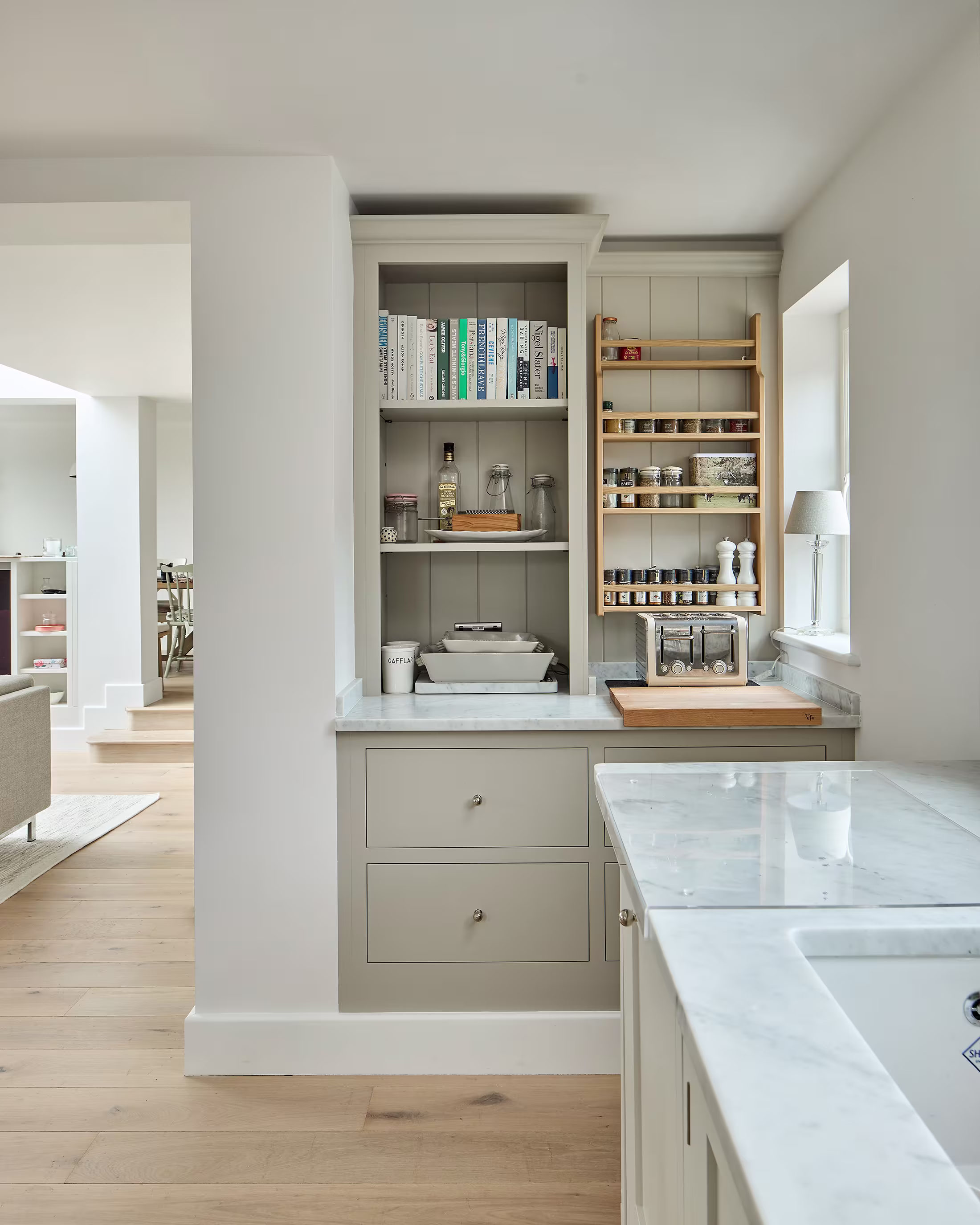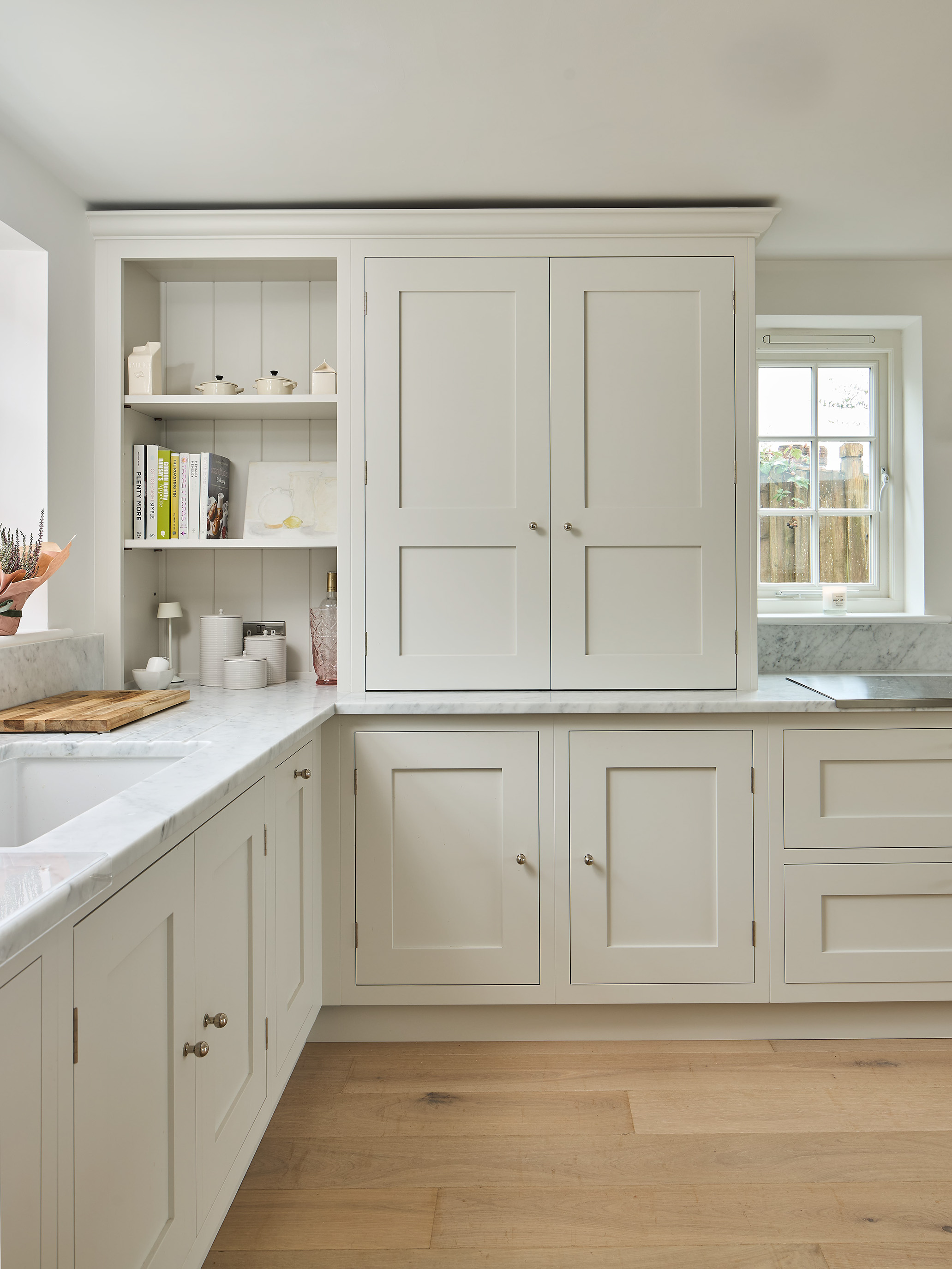 This beautiful family home in Sevenoaks, was a sanctuary for many years when it was time for a full renovation to embrace the next chapter of their lives. The existing floor plan had served them well but there were areas that could do more. A new kitchen in a sunlit garden-facing area connects to other family rooms and spaces they plan to spend a lot of time in as well as to entertain in. We’ve kept the scheme natural and calming using plenty of natural materials. A freestanding pantry and breakfast dresser link the island and seating area, where they envision spending most of their time.